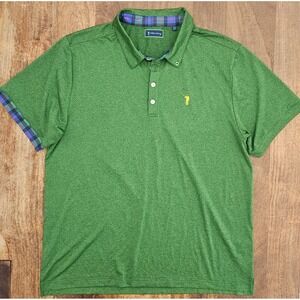 William Murray Golf Polo Shirt XL Green Plaid Collar Athletic Stretch