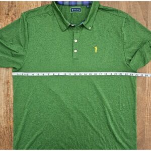 The William Murray Golf Polo Shirt in XL size features a stylish green plaid collar and short sleeves, perfect for athletic or casual occasions. Made from a blend of polyester and spandex, this polo shirt offers stretch for added comfort and flexibility. The collared neckline and logo accents add a touch of sophistication, making it ideal for summer and spring seasons, especially for golf enthusiasts looking for a performance-driven piece of clothing. Easy to care for with machine washable instructions, this regular fit polo is a must-have for any man's wardrobe.