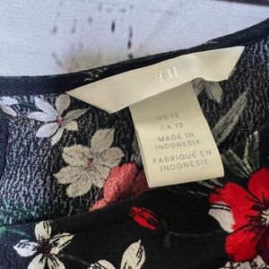H&M Navy Floral Long Sleeve Blouse Red White Flowers Romantic Top US 12