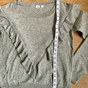 GAP Gray Knit Sweater with Ruffle Detail | Long Sleeve | Small