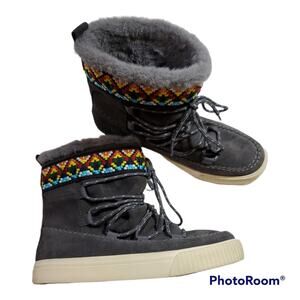 TOMS | Alpine Gray Suede Lace Up Faux Fur Ankle Sneaker Boots | Size 6