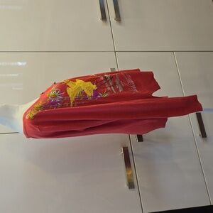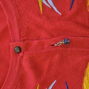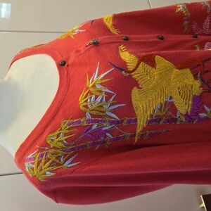 Soft Surroundings Embroidered Bird Charm Button Up Cardigan Pink Red Size Small