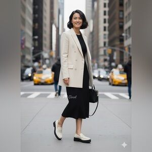 Brand new Quince lug sole loafers in a modern bone / ivory color. These elevated platform loafers feature a bold chunky sole with a sleek, minimalist silhouette—perfect for work, travel, or everyday wear.