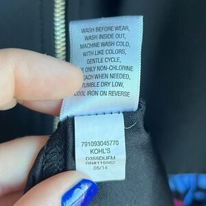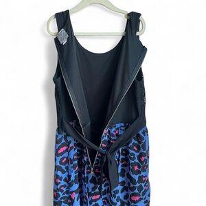 This chic kids dress features a black lace bodice and a vibrant blue and pink leopard print skirt. Perfect for any occasion, it combines comfort with style.