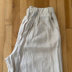 Elegant cream linen pants by First Lite. Perfect for any occasion.