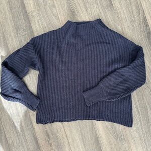Cozy turtleneck sweater. Ribbed texture. Long sleeves. Perfect for layering.