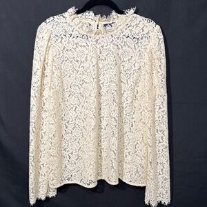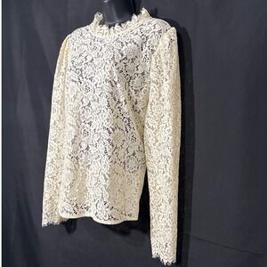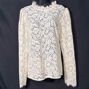 GAP Women XXL Cream Floral Lace Long Sleeve Puff Shoulder Dainty Cottagecore Fem