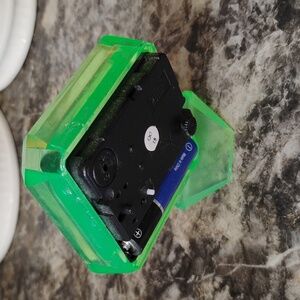 Works! Cute and unusual vintage alarm clock. It's about 3.5" x 3.5" Battery not included.