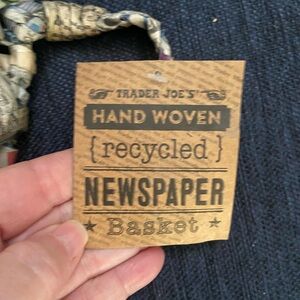 Enhance your space with this vibrant handcrafted woven basket. Ideal for storage or as a decorative piece. Hand made newspaper print weave. Great decorative piece. New.