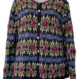 Talbots Vintage Cardigan Sweater Crochet Floral