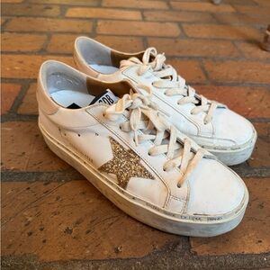 Golden Goose White and Gold Star Sneakers
