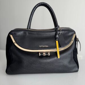 Cromia Black Italian Leather And Suede Satchel