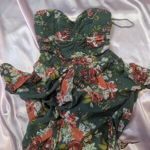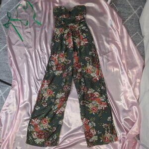 BOG Collective Size Small Green Floral Jumpsuit