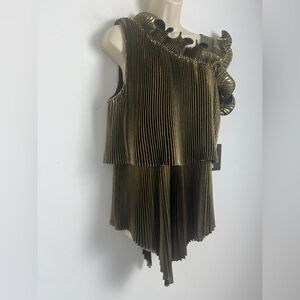 NEW Halogen X Atlantic-Pacific Large Pleated Asymmetrical Gold Black Lame Blouse