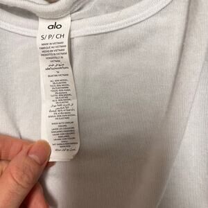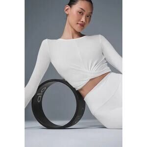 ALO Yoga Cover Long Sleeve Twist Front Crop Top White Ribbed Small Athleisure