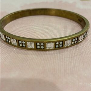 Silpada KR Signed Gold and White Rhinestone Inlay Bangle Bracelet
