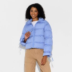 Wild Fable - Women's Bow Puffer Jacket - Wild Fable Blue Stripe Blue