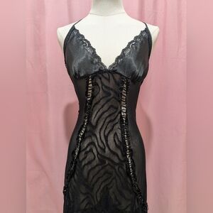 2005 Victoria's Secret Black Sheer Zebra Maxi Slip Dress (Medium)
