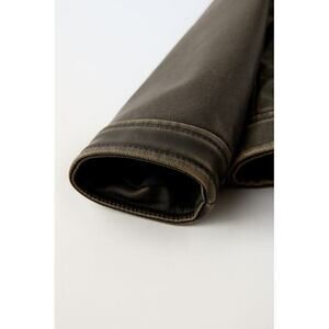 Faux leather biker jacket with lapel collar and long sleeves. Front crossover zip closure. Front pockets. Size 2-3 yo