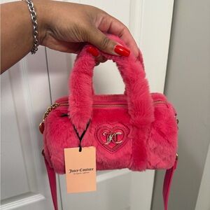 juicy couture fuzzy crossbody. never used. still stuffed and still has tags on it. I DO NOT ACCEPT OFFERS, so don't waste your time.