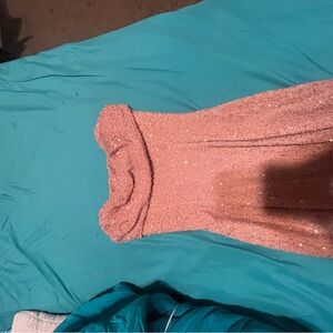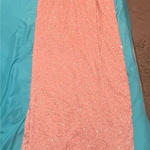Chic pink maxi skirt. Features sparkling embellishments. Perfect for a glamorous look.