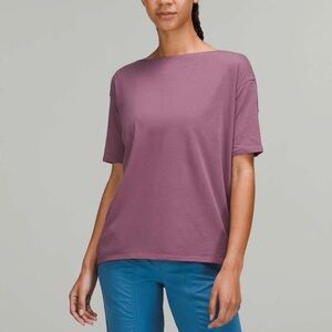 lululemon athletica back in action, vintage, plum, short sleeve top