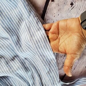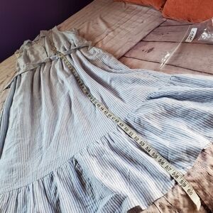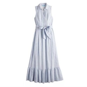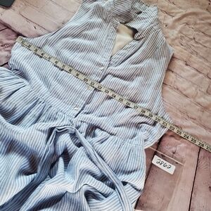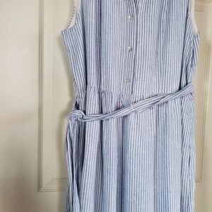 DRAPER JAMES RSVP Button Front Maxi Dress Sleeveless Linen Blend Blue Striped XL
