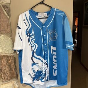 Detroit Lions Button Front Baseball Jersey Men's 2XL Blue White Short Sleeve NFL