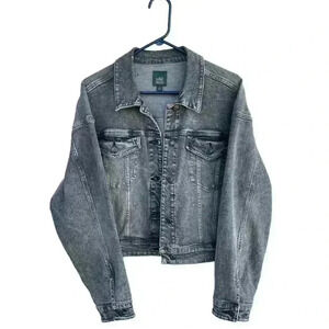 WILD FABLE women’s black denim oversized jacket size M with costume design USED
