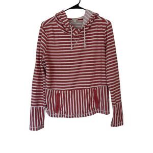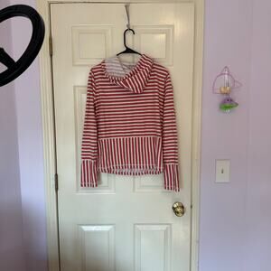 J. Crew Flip-Striped Sweatshirt Size L Red White Cotton Preppy Beach Coastal