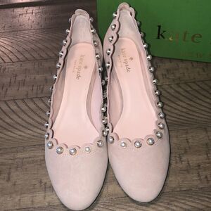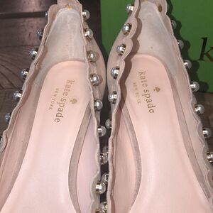 Scallop trim gorgeous details spade ♠️ ♠️ logo in back. Comfortable. Sturdy. Romantic. In Box. Stored and shipped sealed. Worn once. almost light pink neutral color.