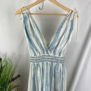 Ziuzn Cream & Blue Striped Sleeveless Maxi Dress OS