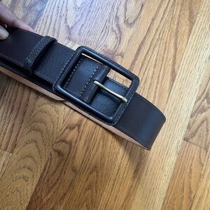 Women’s Brown Leather Belt Heavy Duty Square Buckle Adjustable 35”-39”