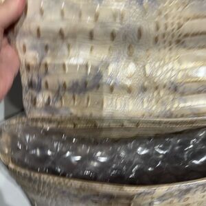Chic Brahmin satchel with crocodile embossing. Elegant tan and cream tones. Perfect for stylish outings.