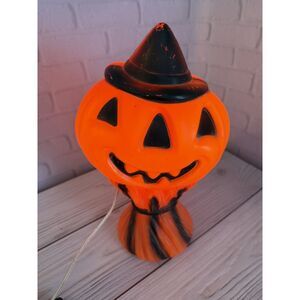 Vtg 1969 Empire Plastic Halloween Blow Mold Pumpkin Jack O Lantern Witch Hat, used is great condition, works! 15" tall, table top blow mold