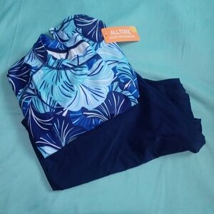 💙🤍 NWT Alltoke Swim Set Bathing Suit Blue Floral 4X Tropical Pool Beach