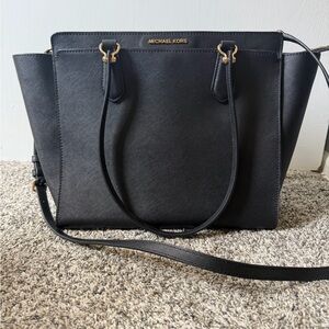 Chic black tote by Michael Kors. Features elegant gold hardware. Perfect for daily use.