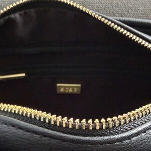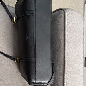Chic black shoulder bag by BCBG. Features elegant gold accents. Perfect for versatile styling.