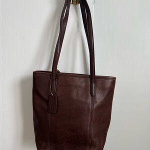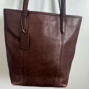 Sophisticated Coach tote in rich brown leather. Ideal for daily use. Stylish and practical design.