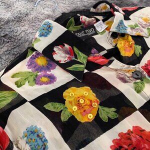 VTG Take Two Floral Checkerboard Button Up