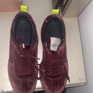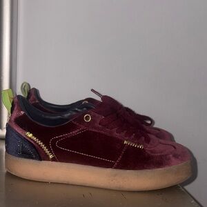 Burgundy sneakers with navy heel. Stylish and versatile. Ideal for casual outings.