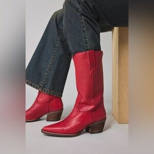 STEVE MADDEN ALBANY WESTERN BOOTS IN RED LEATHER 7