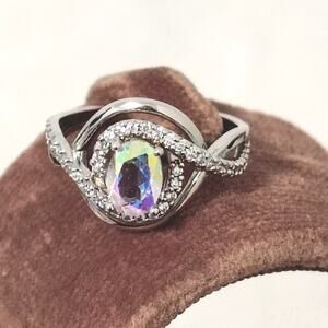 Sterling Silver 925 Iridescent Rhinestone Halo Twist Ring Size 6.75 TGI Signed
