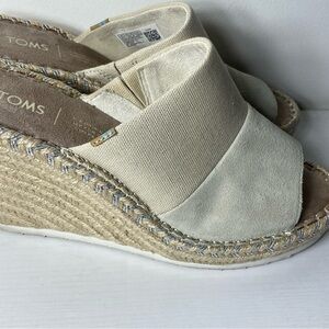 TOMS Women’s 9.5 Espadrille Slide Sandals Cream Suede Canvas EU 41