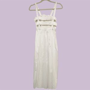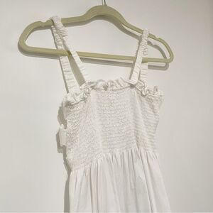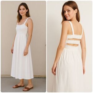 White Smocked Midi Dress Open Back Cage Strappy Sundress Cottagecore Minimalist