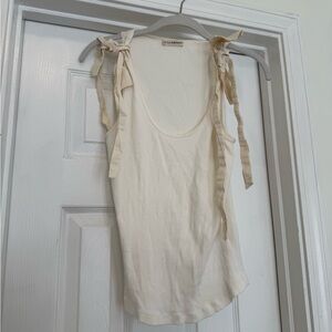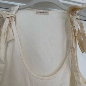 Ulla Johnson Cream Tie-Shoulder Top. Size small and true to size. A few slight marks, as shown in photos. Not super noticeable but worth mentioning and I haven’t tried to get out.