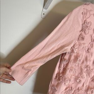 Charming light pink cardigan with floral details. Ideal for a stylish look. Comes from a smoke free environment.