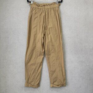 Zara Pants Womens Small Beige Paperbag Tapered Belted High Rise Elastic Waist