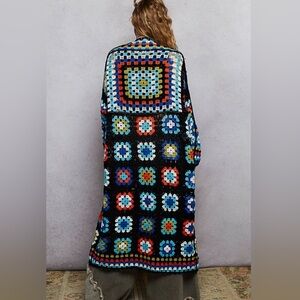 Granny squares for miles! Vibrant crochet design. Long and flowing. Perfect for layering.