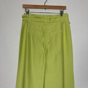 JOA Belted Crop Wide Leg Trouser Pants In Light Lime Green Size: Medium
